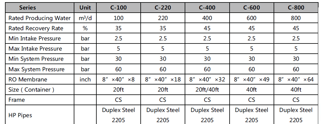 C系列海水淡化設備特點: